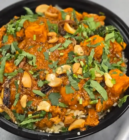 Boneless Chicken Cooked In House Curry Sauce With Traditional Indian Spices.
